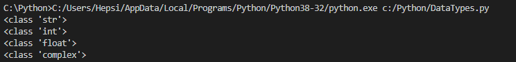 The output clearly shows that we have created a string variable i.e., x , integer variable i.e., y , float variable i.e., z and a complex variable i.e., a.