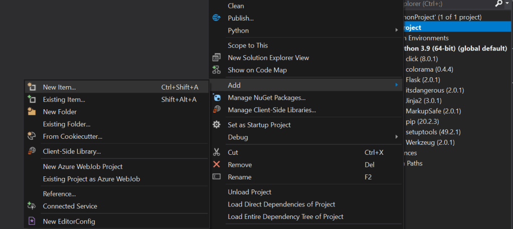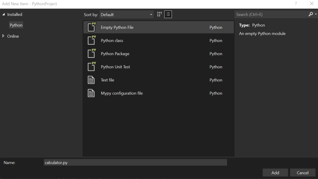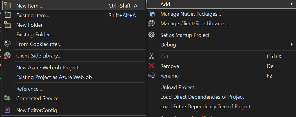 Let’s create a new file, to our existing project. Right click on the project -> select Add -> New Item