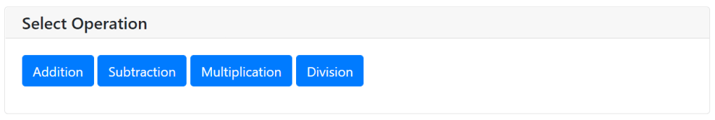 The set of code creates two buttons, that is required to captured the operation type, i.e., addition, subtraction, multiplication or division.
