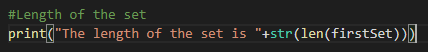 To determine the number of items in set, we use length keyword.