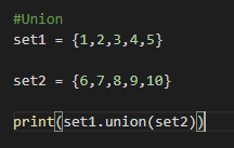 Union: This is a very important method in Set where it combines the values from two sets and returns one single set.