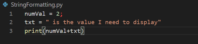 In the second line, in the text variable, wherever, we want to display 2 we will add flower bracket there.