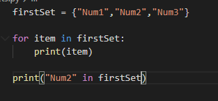 In the last line, the code is checking whether “Num2” is present in the set firstSet.