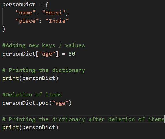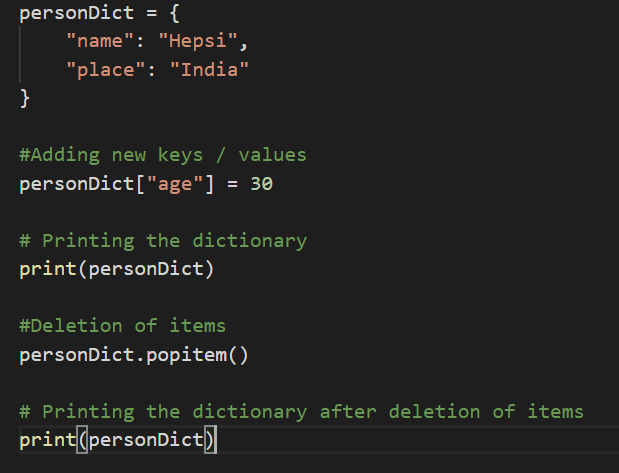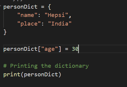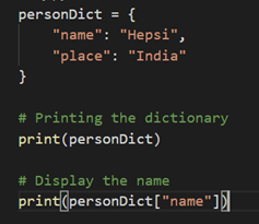 We have created a dictionary called as “personDict” that stores two values, name and the place.