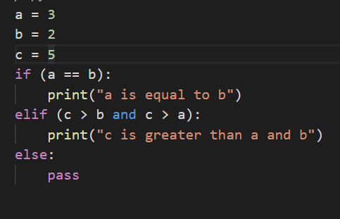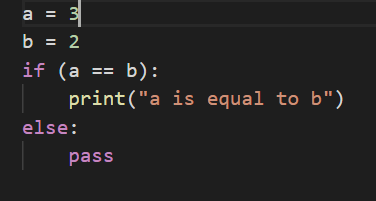 There is a if statement that says, if a is equal to b, print the statement, “a is equal to b”.