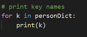 In the second print statement, we are displaying the value of the nameKey of the “personDict”.