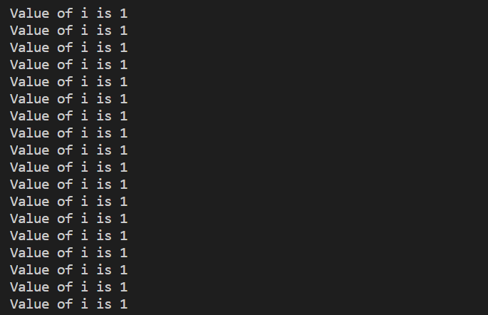 To stop the execution, we need to add a condition to increment the value of i so that this executes accordingly.