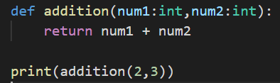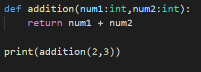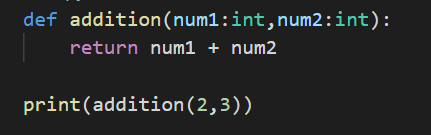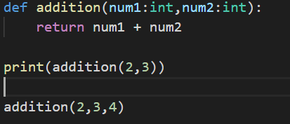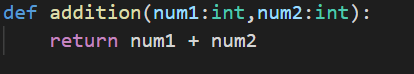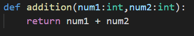 Observe this code carefully. We have a function definition addition that is taking two parameters and returning the addition of two parameters that is passed to the function.